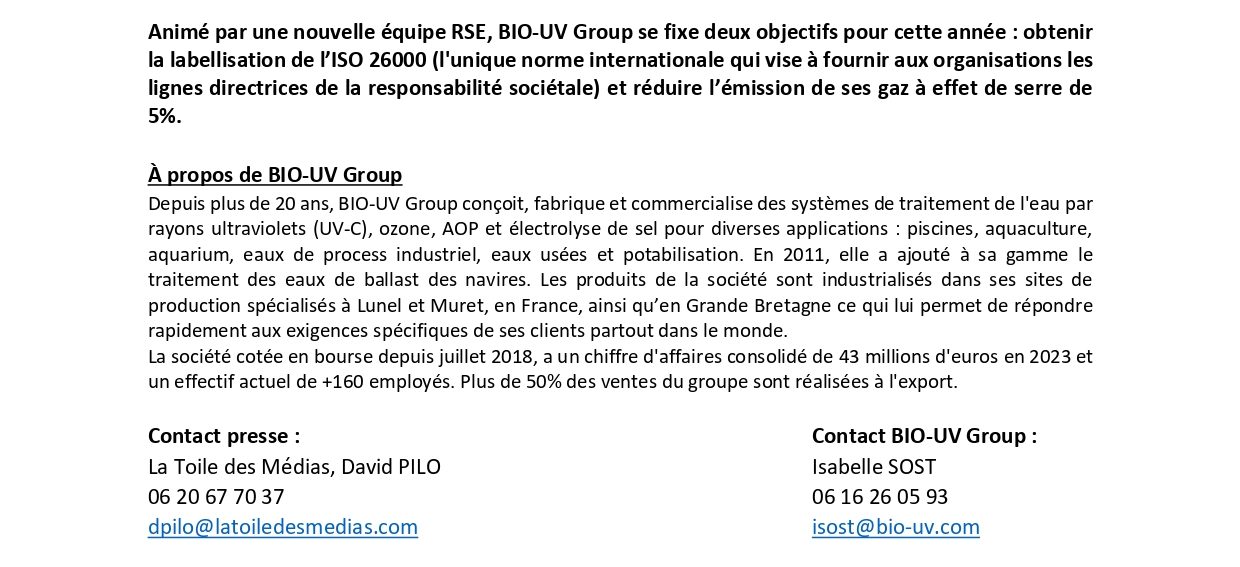 28 mars 2024 BIO-UV Group renforce sa politique RSE avec de nouvelles initiatives et des engagements environnementaux au quotidien ! Partager