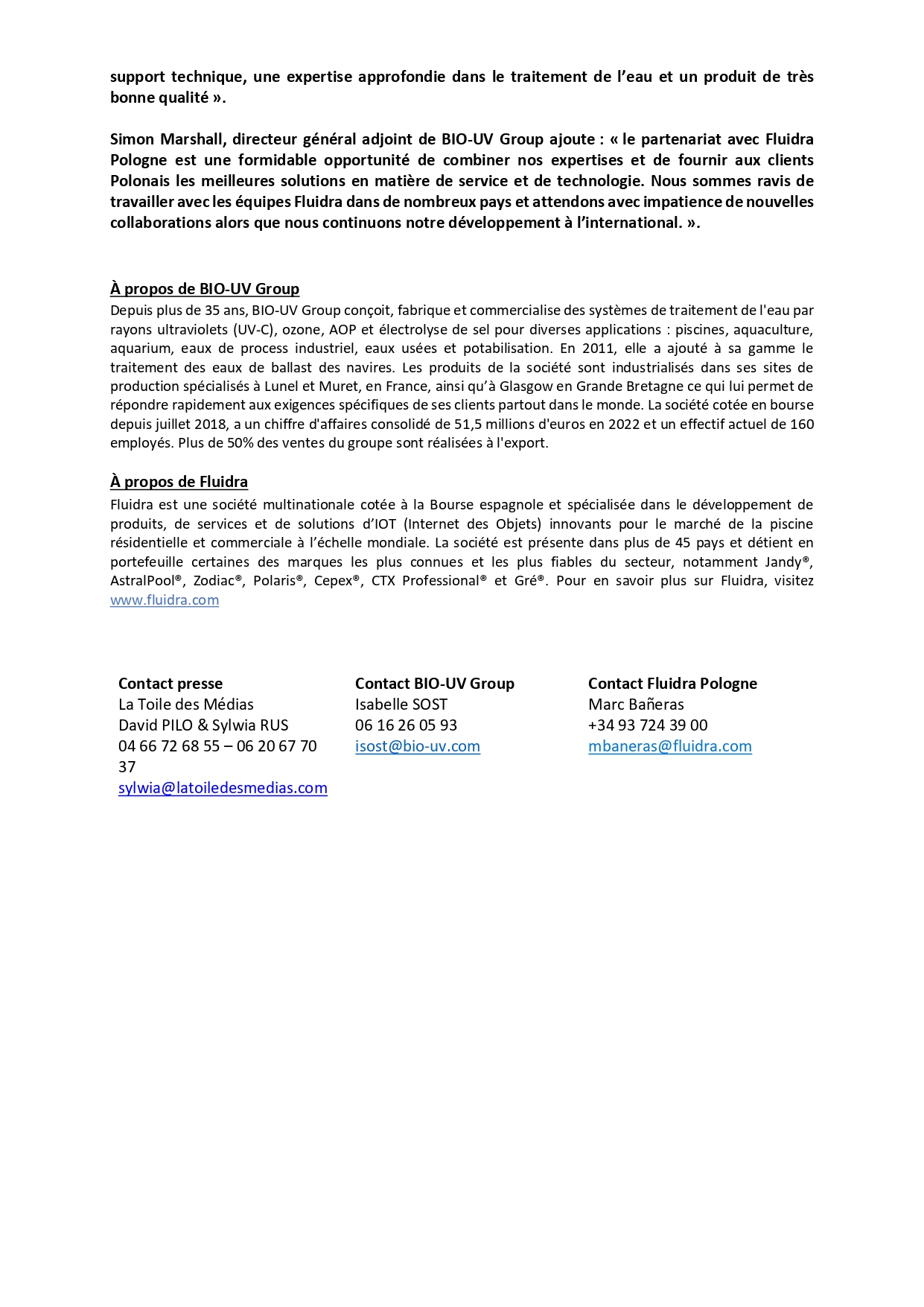 BIO-UV Group signe un nouveau partenariat commercial avec FLUIDRA Pologne