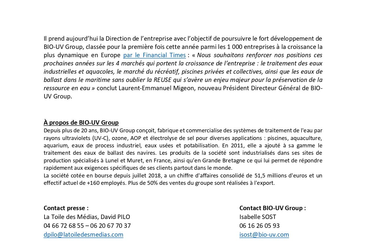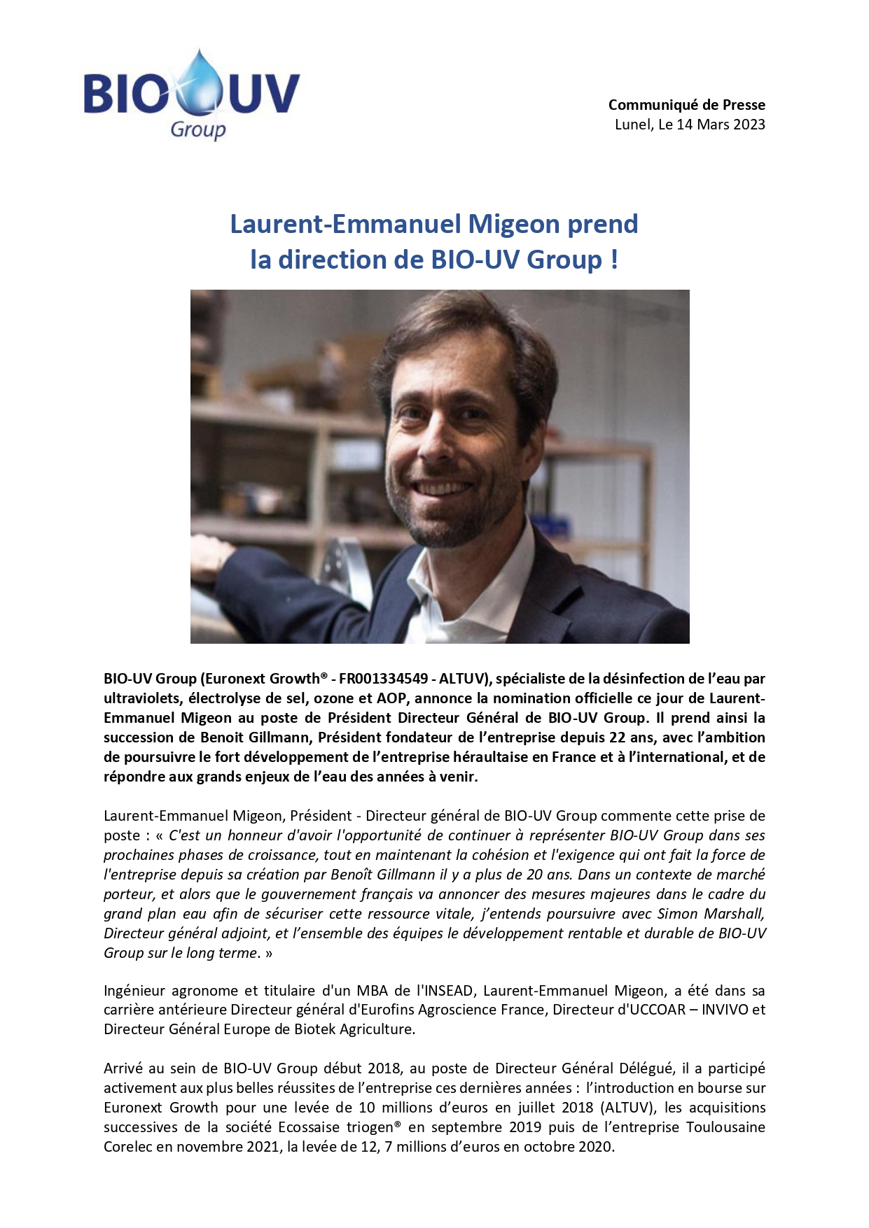 Laurent-Emmanuel Migeon prend la direction de BIO-UV Group !