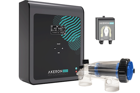 The Akeron Salt salt electrolysis system ensures perfect water disinfection without chemicals. Its interactive backlit display provides access to a 24/7 mode for variable speed pumps, an integrated standby mode, an adjustable polarity reversal time, and the display and settings for the salinity range.