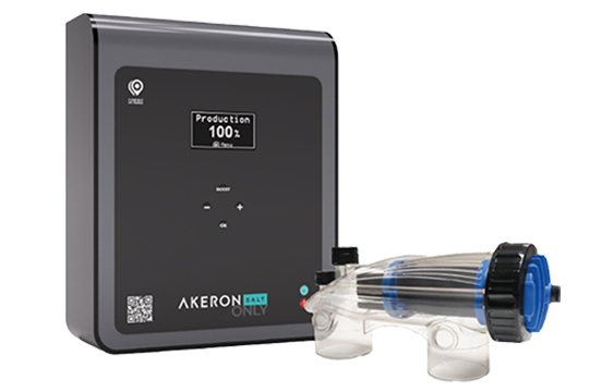 L’électrolyseur au sel Akeron Salt assure une désinfection parfaite de l’eau sans produits chimiques. Son écran rétro-éclairé interactif donne accès à un mode 24/24 pour les pompes à vitesses variables, ainsi qu’au mode sleep intégré, la possibilité de régler la durée d’inversion de polarité et à l’affichage et aux réglages de la plage de salinité.